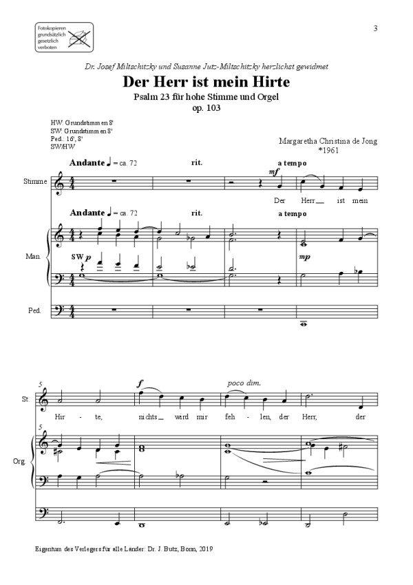 | Untertitel: | für Gesang (hoch) und Orgel Partitur |