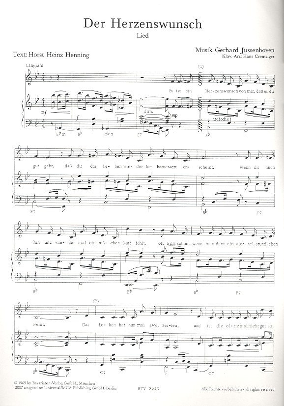 | Untertitel: | für Gesang und Klavier Verlagskopie |