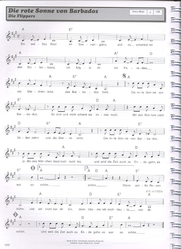 Das bekannte und beliebte Liederbuch in neuem Gewand: Mit aktuellem Design, gelifteten Arrangements und praktischer Spiralbindung wird diese Version dem häufigen Gebrauch gerecht. Die Songliste liest sich wie das 'Who Is Who' des bekannten Liedgutes: Stimmungslieder, Hüttenlieder, Schlager, Rock-Oldies, Abschiedslieder, Weihnachtslieder und schließlich Folksongs arrangiert als Melodielinie, Text und Akkorde sind eine nie versiegende Fundgrube für Sing und Feierwütige. Hits wie Himbeereis zum Frühstück, Tür an Tür mit Alice, Eine neue Liebe ist wie ein neues Leben, Stern der Deinen Namen trägt, Blue Bayou, Die kleine Kneipe oder auch Hymn machen dieses Liederbuchzum festen Bestandteil einer jeden guten Party. in Zusammenarbeit mit dem Verlag Hildner 99 Luftballons 1001 Nacht Amsterdam Am Tag als der Regen kam Angie Anton aus Tirol A Tears go by Auf der Reeperbahn Auf der Alm da gibt's koa Sünd' Aus Böhmen kommt die Musik A weißes Blatt'l Papier Banjo-Boy Beim Kronenwirt Blaue Nacht am Hafen Blue Bayou Blueberry Hill Bunt sind schon die Wälder Bye bye Love Casatschok Catch the Wind Cielito Lindo Cindy oh Cindy Crying in the Rain Dandy Das Gamsgebirg Das kannst du mir nicht verbieten Da sprach der alte Häuptling Dat du min Leewsten büst Da Vugelbeerbaam Death of a Clown Dedicated Follower of Fashion Der Eiermann Der Junge mit der Mundharmonika Der Königsjodler Der Tuwakwak Der weiße Mond von Maratonga Dich werd ich nie vergessen Die kleine Kneipe Die Liebe ist ein seltsames Spiel Die rote Sonne von Barbados Die schwarze Barbara Do wah diddy diddy Downtown Drei weiße Birken Drunt in der grünen Au Du hast mich tausendmal betrogen Durscht Dust in the Wind Easy Rider Eine neue Liebe ist wie ein neues Leben Einer ist immer der Loser Ein Loch ist im Eimer Ein paar rote Ringelsöckchen Ein schöner Tag Ein Stern der deinen Namen trägt Ein Tiroler wollte jagen Erzherzog-Johann-Jodler Es lebe der Sport Es waren zwei Königskinder Eve of Destruction Fahrende Musikanten Feieromd Fein sein beinander bleibn Fliege mit mir in die Heimat Fliegerlied Freude schöner Götterfunken Freut euch des Lebens Für immer jung Fürstenfeld Ganz in weiß Gartenzwergmarsch (Adelheid) Geh ma zu dir oder geh ma zu mir Geisterreiter Ginny come lately Green green GHrass of Home Griechischer Wein Guten Morgen liebe Sorgen Guter Mond Hamburg ist ein schönes Städtchen Hava nagila Heimat deine Sterne Hello-a Help Herzilein High Noon Himbeereis zum Frühstück Hymn I am a Rock I bin der Turlhofer Ich bau dir ein Schloss Ich schau den weißen Wolken nach Ich will nen Cowboy als Mann Ich will Spaß Ich zähle täglich meine Sorgen Imagine Im Krug zum grünen Kranze Im Wagen vor mir In der Schweiz In Hamburg sind die Nächte lang Itsy Bitsy Teenie Weenie I will survive Jetzt gang i ans Brünnele Joana Johnny Walker Kalinka Kehr ich einst zur Heimat wieder Kimmt schö hoamli die Nacht King of the Road Kornblumenblau Kriminal-Tango La pastorella Lebt denn der alte Holzmichl noch Lemon Tree Liechtensteiner Polka Like a rolling Stone Life is live Loch Lomond Lola Lucille Major Tom Me and Bobby McGee Mein Freund der Baum Mein Vater war ein Wandersmann Mendocino Mir son vom Woid dahoam Mrs. Robinson Nights in white Satin Oben ohne Oh happy Day On Top of old Smokey O Susanna O wie wohl ist mir am Abend Paloma blanca Pure Lust am Leben Red River Valley Rhinestone Cowboy Rivers of Babylon Rock around the Clock Rolling home Rosamunde Rote Rosen rote Lippen roter Wein San Francisco Schnucki ach Schnucki Schuld war nur der Bossa Nova Seasons in the Sun Sentimental Journey Shake Hands She loves You Siebentausend Rinder Skandal im Sperrbezirk Solang der alte Peter Spanish Eyes Spiel noch einmal für mich Habanero Suzanne Sweet Caroline The Times they are a-changin' The universal Soldier The wild Rover Tiritomba Tür an Tür mit Alice Über sieben Brücken musst du gehn Und es war Sommer Von dem Berg da rauscht ein Wasser Wahnsinn Walk of Life Wand'rin' Star We can work it out Wenn die Sonne erwacht in den Bergen What have they done to the Rain Whiskey in the Jar Wind of Change Wir wollen niemals auseinandergehn Wo die Alpenrosen blühn Yellow Rose of Texas Zillertal du bist mei Freud Zufällig Zum Tanze da geht ein Mädel Zwei kleine Italiener