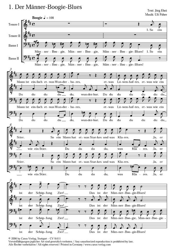 nach Texten von Ehni, Tucholsky, Ringelnatz Der Männer-Boogie-Blues In unserer Nacht Das Warzenschwein Meine Musca Domestica Chanson Am Doubs am Doubs Anna Luise Der Verführer-Tango