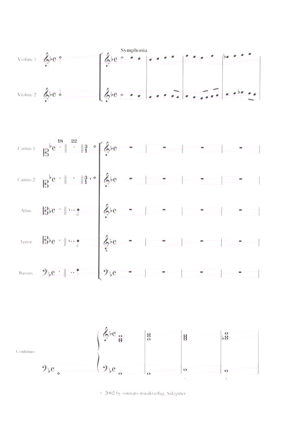| Untertitel: | für 5 Stimmen (SSATB), 2 Violinen und Bc Partitur |