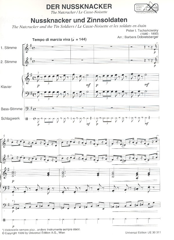 Children on Stage Dobretsberger, Barbara, bearb. Nussknacker und Zinnsoldaten Großvater-Tanz Tanz der Rohrflöten Der Mausekönig mit seiner Armee Das Zauberschloß auf dem Konfitürenberg Blumenwalzer Finale