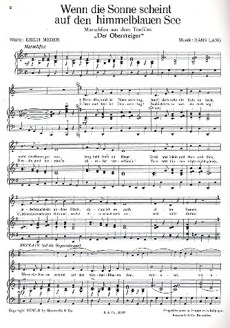 Meder, Erich, Text Lang, Hans, bearb. aus dem Gloria-Film nach der Operette Der Obersteiger Wenn die Sonne scheint auf den himmelblauen See Inkognito Und ich hab' dir in d'Augerln g'schaut