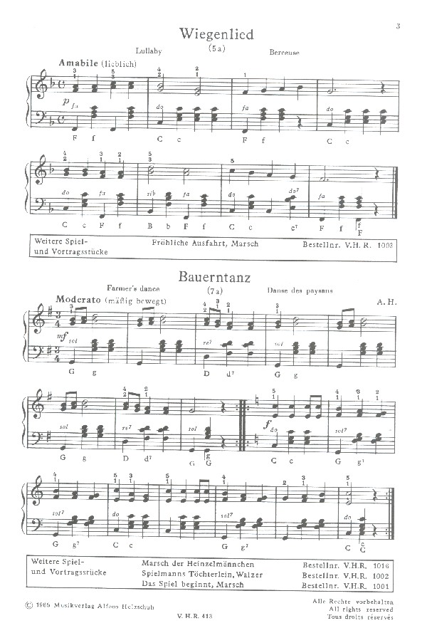 Wiegenlied Bauerntanz Volksweise aus Österreich Galopp Frühlingstanz Orpheus in der Unterwelt Und so wollen wir Polsterltanz Als der Großvater die Großmutter nahm Lustig ist das Zigeunerleben Bandltanz Chikago-Fox Jugendmarsch Cowboy-Song Freut euch des Lebens Kathreinerle Du du liegst mir im Herzen Kleiner Walzer Schwäbisches Tanzlied Muss i denn zum Städtele hinaus Vo Luzern uf Wäggis zua Der treue Husar Bill Grogam's Ziege Es ritten drei Reiter Leichte Cavallerie Schöne Minka Altes Liebeslied Ich schieß den Hirsch