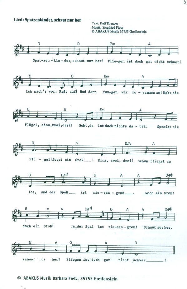 Singspiel Weil Gott uns wie ein Vater liebt Spatzenkinder, schaut nur her! Der Vater in dem Himmel He, du! Hallo, du! (Spatzen-Liebeslied) So baun wir unser Nest