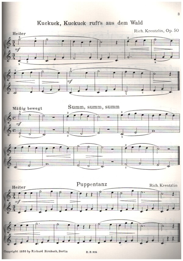 Krentzlin, Richard, ed Eine Sammlung der schönsten Volks- Opern- und Tanzmelodien, vom leichtesten Anfang fortschreitend, für den Klavierunterricht und zur Unterhaltung.