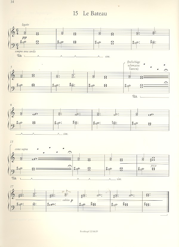 22 kleine Klavierszenen Wassertropfen Leuchtfeuer Sternenhimmel Unter dem Meer Farben Vom Teich zur Wiese Der singende Wind Abschied Das stumme Metronom oder Der unsichtbare Dauerläufer Pantomime Die klapprige Lok Mondnacht Radio Suite Le Bateau Wiegenlied Meeresnebel Flug der Zugvögel Legende Fanfaren Atlantis Tjalempung