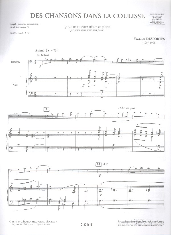 | Untertitel: | coulisse pour trombone ténor et piano |