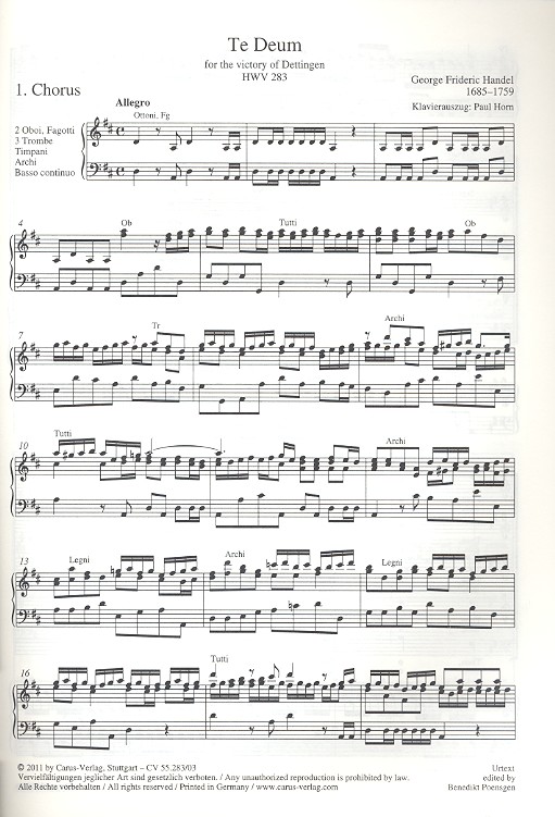 Produktinformationen "Dettinger Te Deum HWV283"