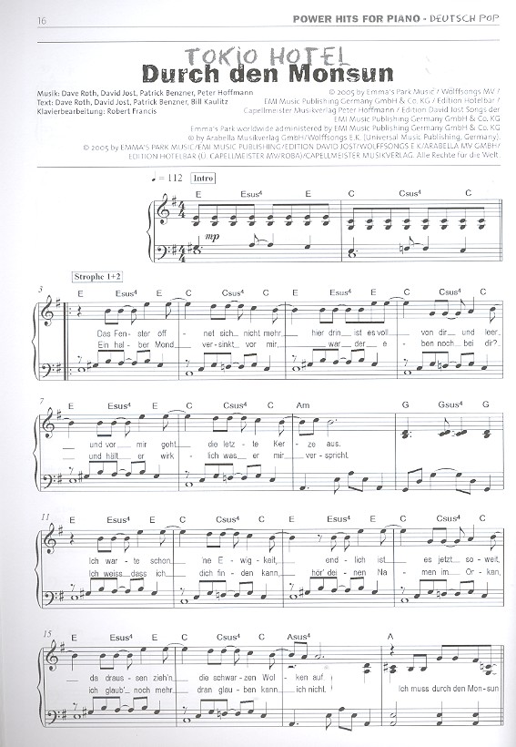 Deutsch Pop: für Klavier (Gesang/Gitarre)