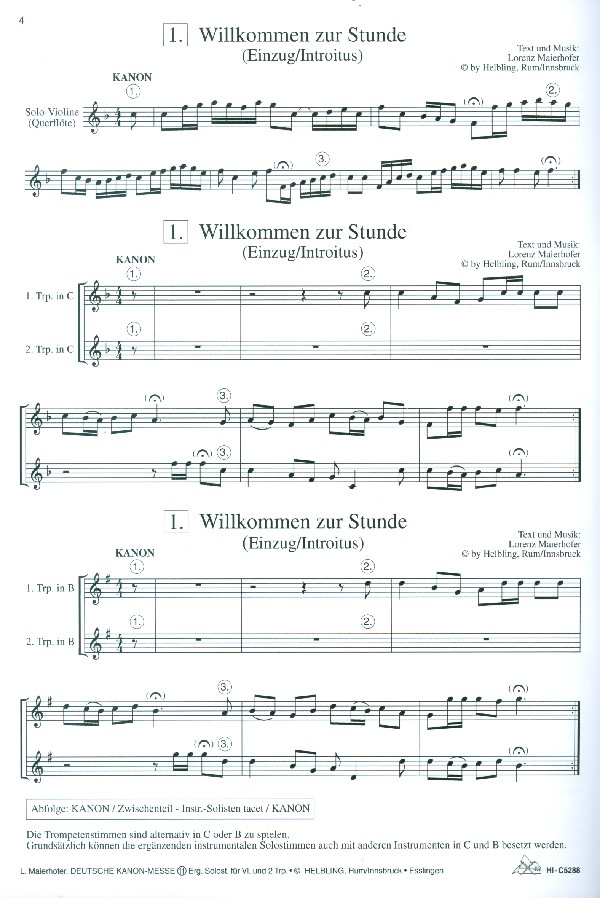 | Untertitel: | Ergänzende Solostimmen für Violine und 2 Trompeten in C/B |