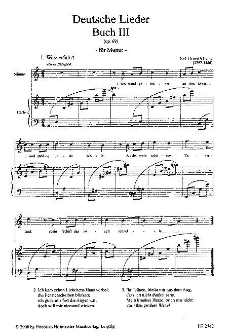 Auf die Berge - H. Heine Beim Schlafengehen - H. Hesse Das Mädhen daheim - H. Hesse Das Meer - H. Heine Die Nacht - J. v. Eichendorff Ein Lied Hinterm Ofen zu singen - M. Claudius Einsamer Herbst - Fr. Nietzsche Fremde Stadt - H. Hesse Kalender - E. Mühsam Königskind - H. Hesse Lied des Harfenmädchens - Th. Storm Mondnacht - J. v. Eichendorff Moritat - H. Hesse Reiselied - H. Hesse Schließe mir die Augen - Th. Storm Steiget auf, ihr alten Träume - H. Heine Träumerei in Hellblau - G. Trakl Wasserfahrt- H. Heine Winterabend - G. Trakl
