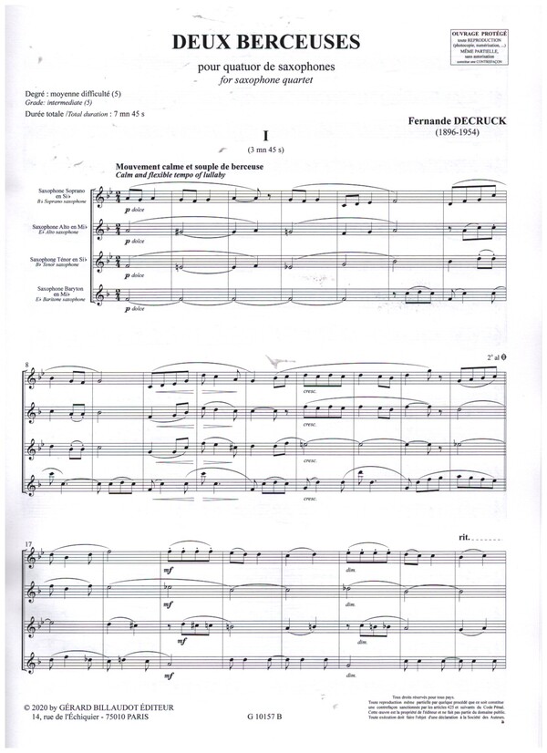 | Untertitel: | pour quatuor de saxophones partition et parties |