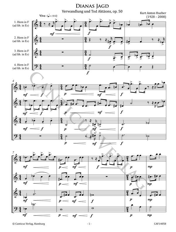 Produktinformationen "Dianas Jagd - Verwandlung und Tod Aktäons op.50"
