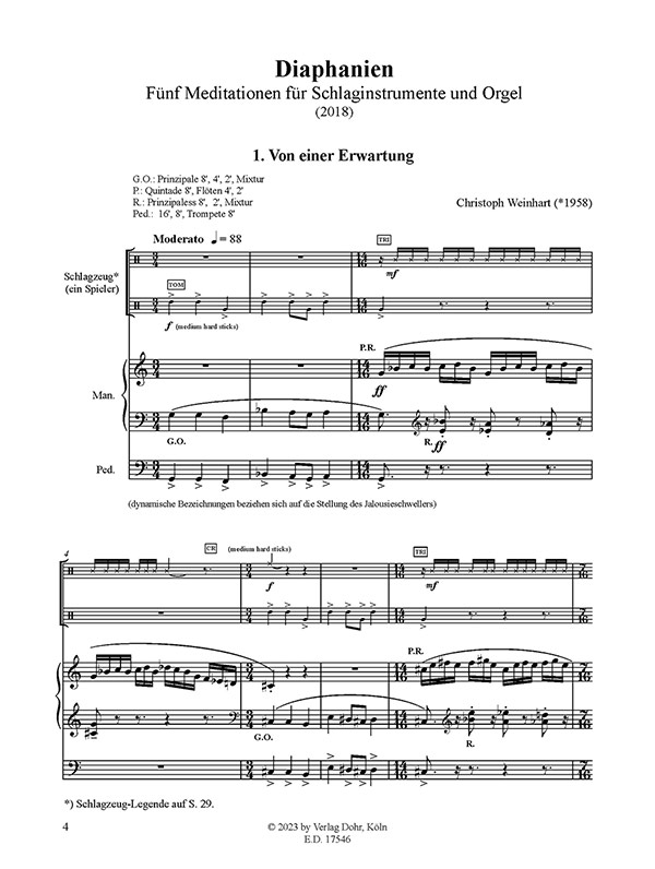 Produktinformationen "Diaphanien für Schlaginstrumente (ein Spieler) und Orgel (2018)"