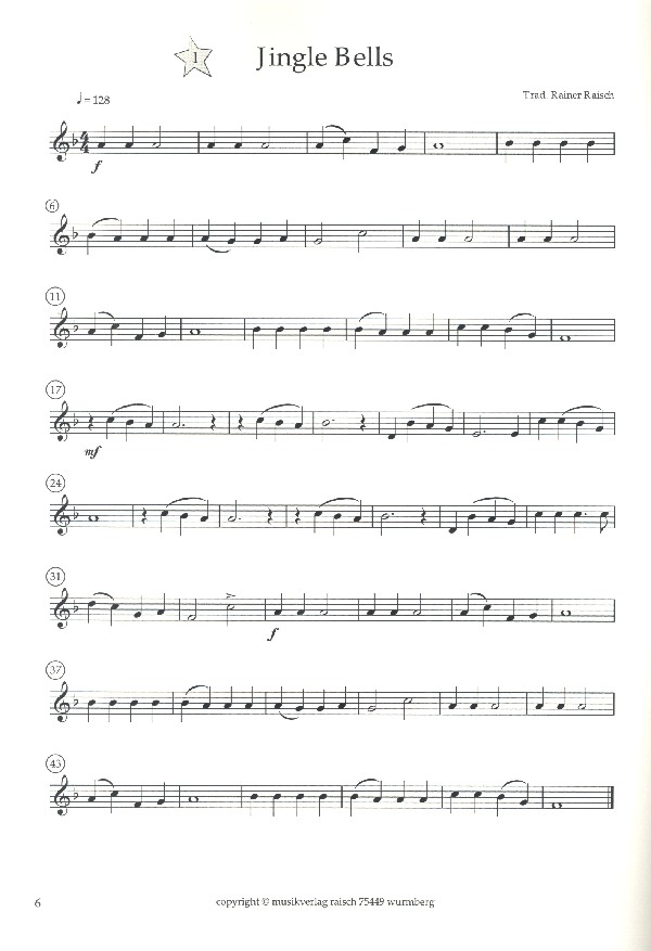 Achtung: nicht kombinierbar mit den Ausgaben für Blasorchester!!! Raisch, Rainer, arr. Jingle Bells Alle Jahre wieder Lasst uns froh und munter sein Morgen kommt der Weihnachtsmann Fröhliche Weihnacht überall Kling Glöckchen Stille stille kein Geräusch gemacht O du fröhliche Go tell it on the Mountain Joy to the World Lobt Gott ihr Christen Gloria der Engel auf den Feldern Leise rieselt der Schnee O Tannenbaum The first Noel Es ist ein Ros entsprungen Schneeflöckchen Weissröckchen Deck the Halls Süßer die Glocken nie klingen Christmas Medley