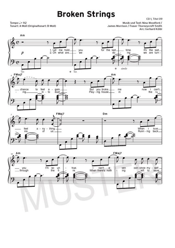 leicht bis mittelschwer 1973 All good Things All this Time Almost Lover Apologize Bad Day Because of You Bleeding Love Broken Strings Candle in the Wind Du erinnerst mich an Liebe Das Beste Das Spiel Gib mir Sonne High Hello Hey there Delilah Hurt Just hold me If everyone cared Jessie Johnny B Keine wie du Say it right Knockin' on Heaven's Door My Heart will go on New Soul Piano Man Pictures of You She's Madonna She's the One Stark So soll es bleiben Stop and stare Symphonie Through the Eyes of a Child Time after Time Unfaithful Tonight