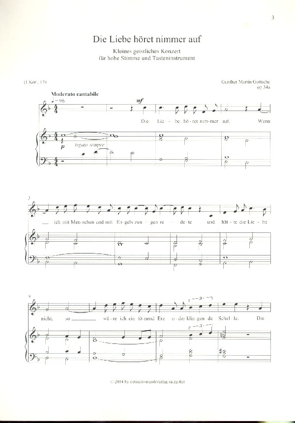 | Untertitel: | Singstimme und Tasteninstrument Kleines geistliches Konzert 1.Kor.,13 |