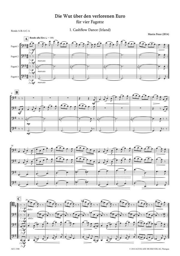 | Untertitel: | für 4 Fagotte Partitur und Stimmen |
