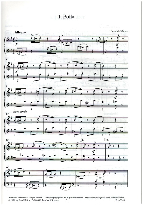 Polka Foxtrott Sehnsucht Drei Walzer: Kinderwalzer Winterwalzer Sommerwalzer Präludium Klezmer spielt Chassidischer Tanz Etüde Fughetta G-Dur Fughetta A-Dur Blues in F Boogie in C Blue Waltz Herbstklänge