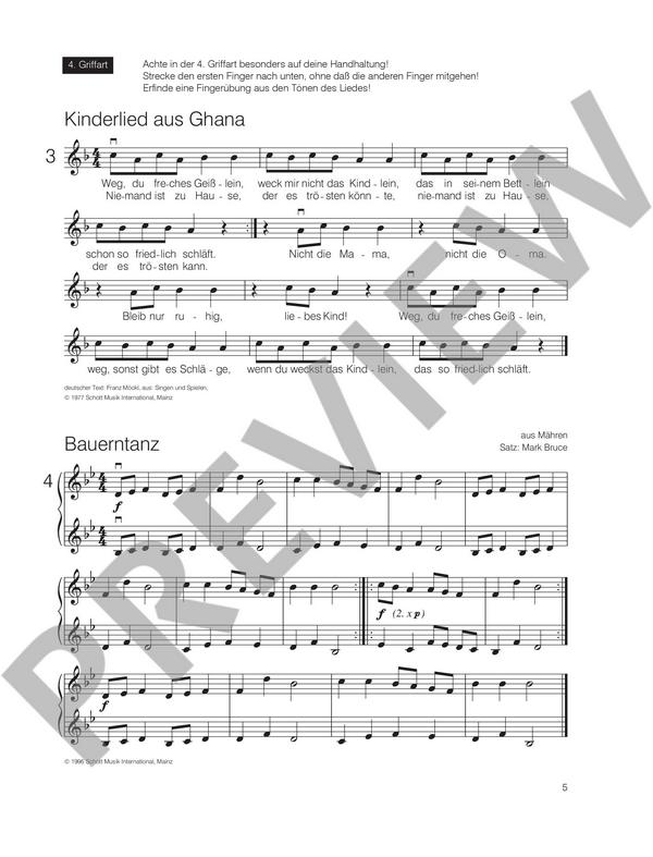 B-Tonarten, C-Dur, 2. und 3. Lage, 'Doppelgriffe und andere Kniffe'