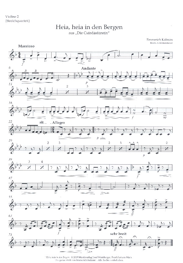 kompatibel mit den Ausgaben für flexibles Ensemble Highlights aus den Operetten Heia heia in den Bergen (Die Csárdásfürstin) Die Mädis vom Chantant (Die Csárdásfürstin) Ganz ohne Weiber geht die Chose nicht (Die Csárdásfürstin) Machen wir's den Schwalben nach (Die Csárdásfürstin) Das ist die Liebe (Die Csárdásfürstin) Tanzen möcht' ich (Die Csárdásfürstin) Grüß mir mein Wien (Gräfin Mariza) Höre ich Zigeunergeigen (Gräfin Mariza) Komm mit nach Varasdin (Gräfin Mariza) Schwesterlein Schwesterlein (Gräfin Mariza) Ich tanz mit dir ins Himmelreich (Der Zigeunerprimas) Die kleinen Mäderln im Trikot (Die Zirkusprinzessin) Lieber Himmelvater sei nicht bös (Die Faschingsfee) Ein kleiner Slowfos mit Mary (Die Zerzogin von Chicago)