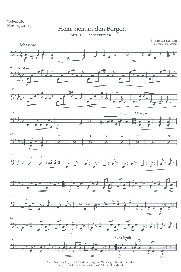 kompatibel mit den Ausgaben für flexibles Ensemble Highlights aus den Operetten Heia heia in den Bergen (Die Csárdásfürstin) Die Mädis vom Chantant (Die Csárdásfürstin) Ganz ohne Weiber geht die Chose nicht (Die Csárdásfürstin) Machen wir's den Schwalben nach (Die Csárdásfürstin) Das ist die Liebe (Die Csárdásfürstin) Tanzen möcht' ich (Die Csárdásfürstin) Grüß mir mein Wien (Gräfin Mariza) Höre ich Zigeunergeigen (Gräfin Mariza) Komm mit nach Varasdin (Gräfin Mariza) Schwesterlein Schwesterlein (Gräfin Mariza) Ich tanz mit dir ins Himmelreich (Der Zigeunerprimas) Die kleinen Mäderln im Trikot (Die Zirkusprinzessin) Lieber Himmelvater sei nicht bös (Die Faschingsfee) Ein kleiner Slowfos mit Mary (Die Zerzogin von Chicago)