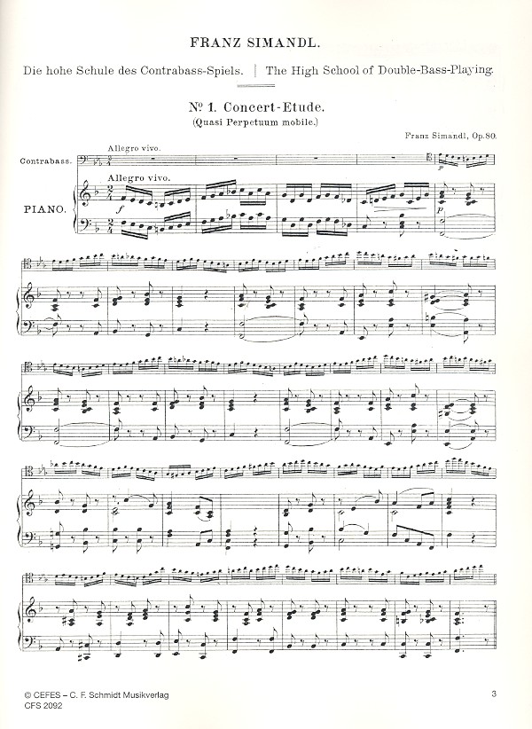 Kontrabassschule Band 3 Simandl, Franz, ed Konzertetüde op.80 (Simandl) Romanze und Mazurka (Moser) Andante und Humoreske op.10 (Dauthage) Konzertstück op.24 (Geissel) Konzert-Polonaise (Misek)