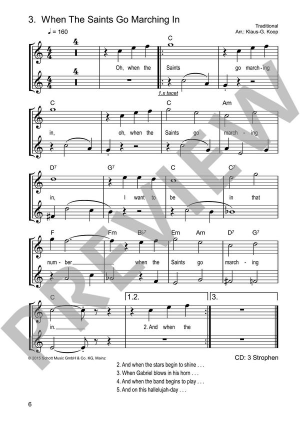 Magolt, Hans und Marianne, arr. Go down Moses Joshua fit the Battle of Jericho When the Saints go marching in He's got the whole World in his Hands Gimme that old Time Religion Go tell it on the Mountain Michael row the Boat ashore Amen Swing low sweet Chariot Rock my Soul Nobody knows the Trouble I've seen Sometimes I feel like a motherless Child Down by the Riverside Oh happy Day The Gospel Train Deep River This Train is bound for Glory Over in the Gloryland Didn't it rain Wade in the Water