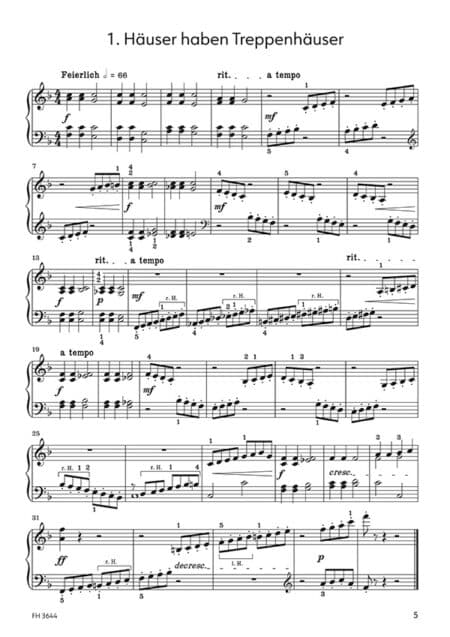 eine Klaviergeschichte für Kinder ab 6 Jahren 1) Häuser haben Treppenhäuser, 2) Der große Schlüssel, 3) Finger weg!, 4) Die Spieluhr am Puppenwagen, 5) Eine Runde schaukeln, 6) Der ungebetene Gast, 7) Reise über Koffer und Kisten, 8) Uniform ohne Knöpfe, 9) Tanz der Buchstaben, 10) Die verzauberte Schreibmaschine, 11) Das kleine Geheimnis, 12) Die verlorene Schreibmaschine, 13) Die unbeschwerte Zeit