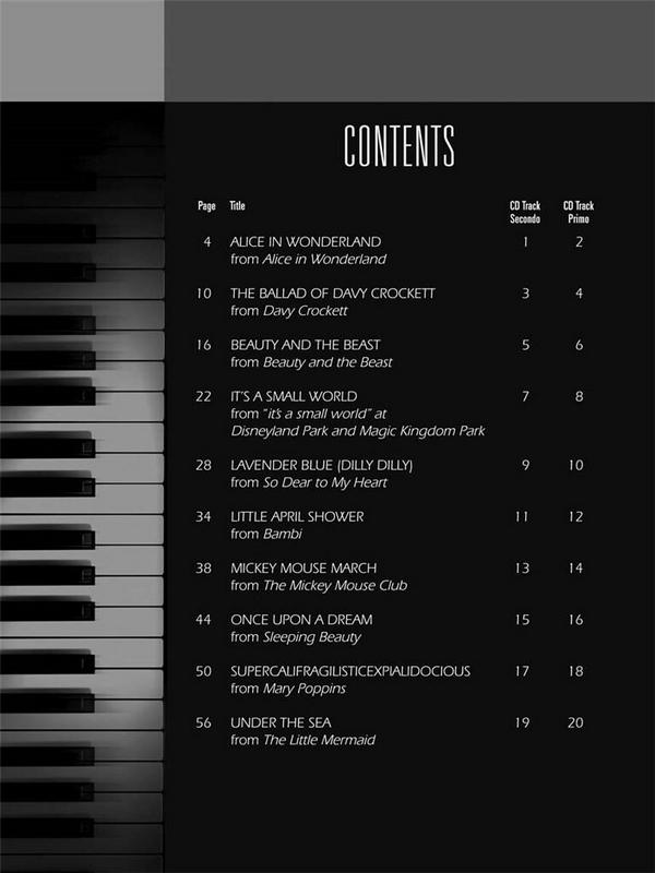 Alice in Wonderland The Ballad of Davy Crockett Beauty and the Beast It's a small World Lavender Blue Little April Shower Mickey Mouse March Once upon a Dream Supercalifragilisticexpialidocious Under the Sea