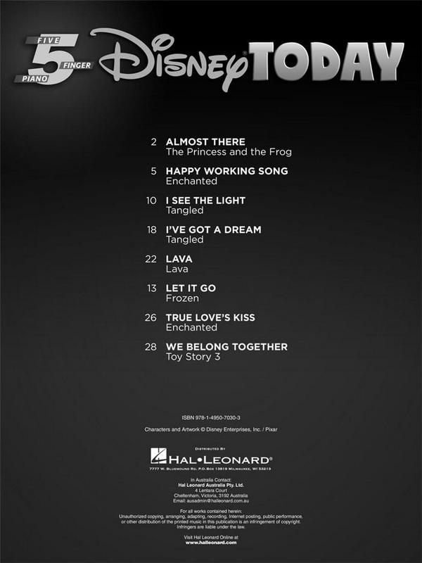 8 new Favorites Almost There (The Princess And The Frog) Happy Working Song (Enchanted) I See The Light (Tangled) I've Got A Dream (Tangled) Lava (Lava) Let It Go (Frozen) True Love's Kiss (Enchanted) We Belong Together (Toy Story 3)
