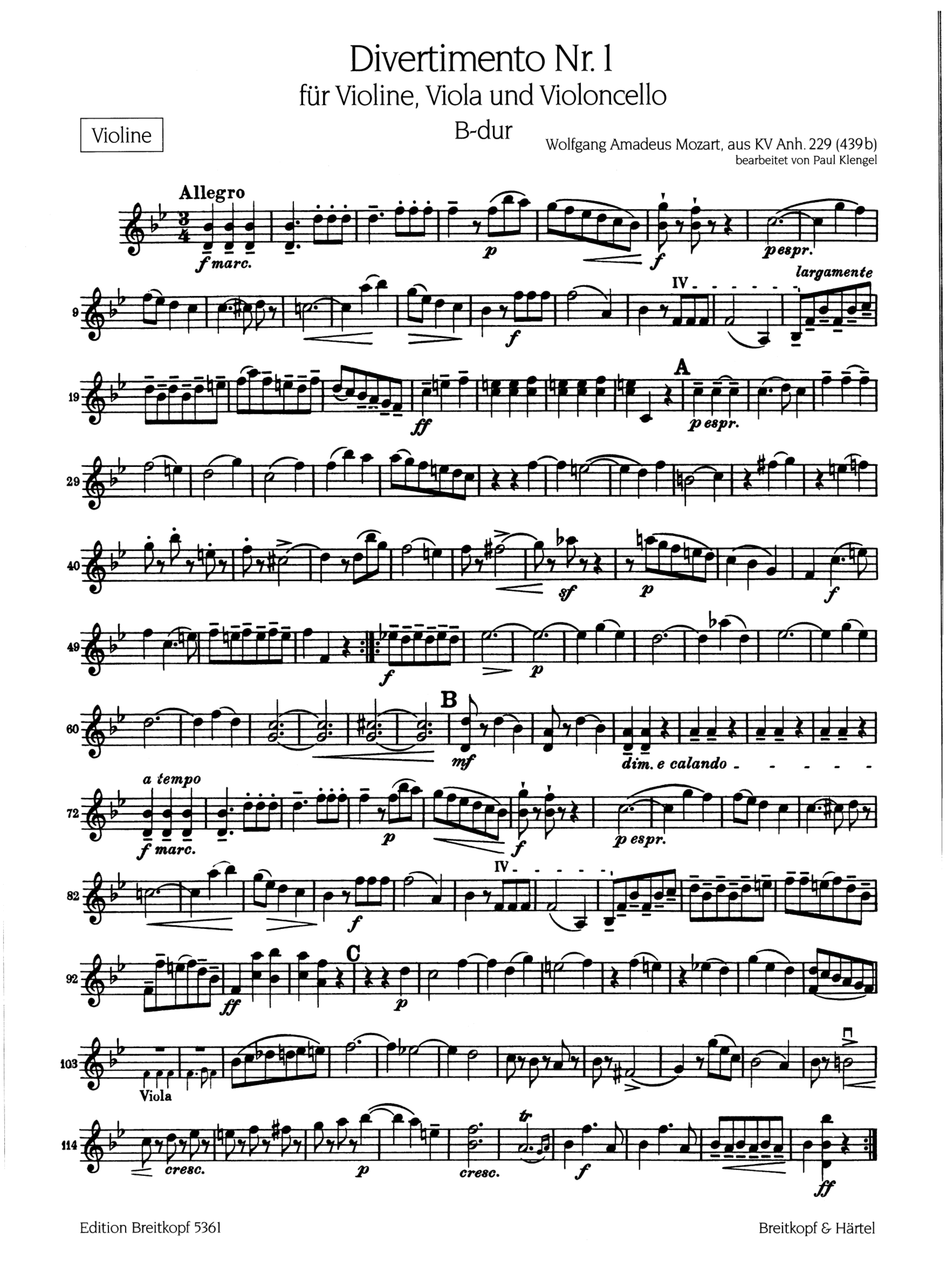 Produktinformationen "Divertimento Nr.1 B-Dur KV Anh.IV:229"