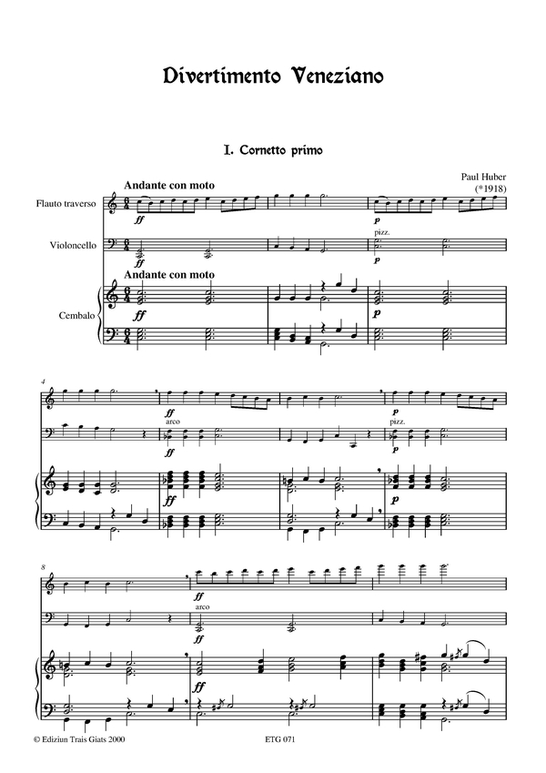 | Untertitel: | für Flöte, Violoncello und Cembalo Partitur und Stimmen |