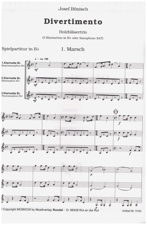 | Untertitel: | für 3 Klarinetten Partitur und Stimmen |