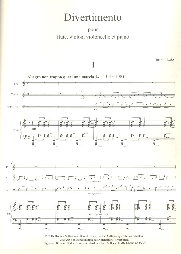 | Untertitel: | pour flûte, violon, violoncelle et piano partition et parties |