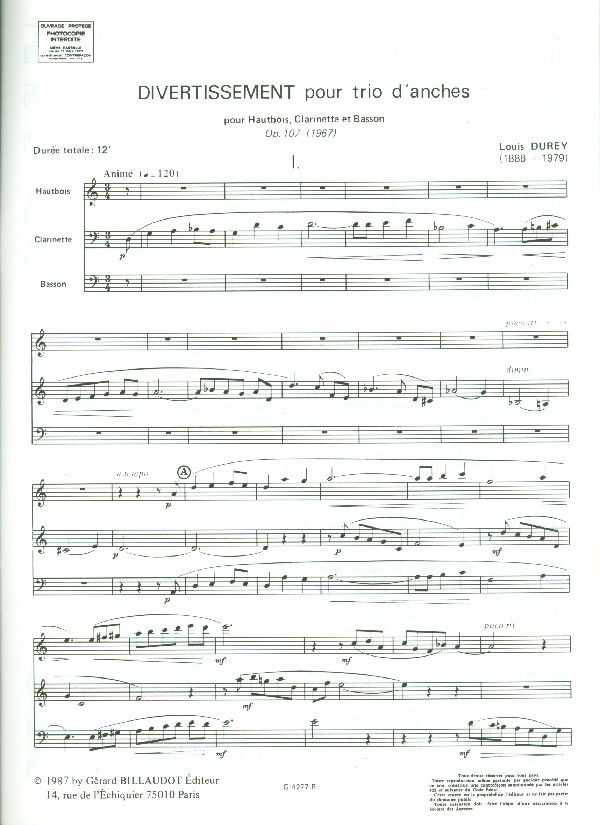 Produktinformationen "Divertissement op.107 pour trio d'anches"