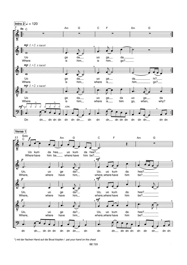 Kalmer, Stefan, ed Haas, Alex, arr. Jakob, Willie, Text Bosse Hits a cappella