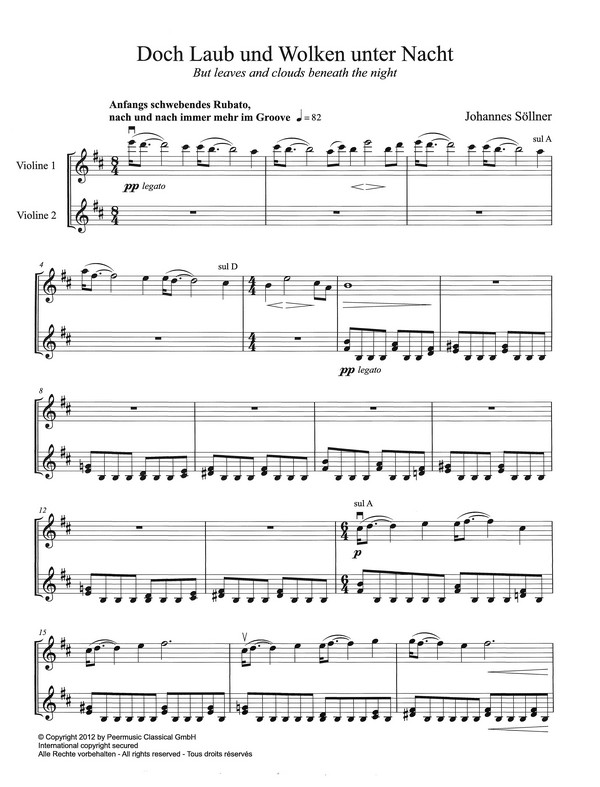 Music for the Twiolins Dingler, Marie-Luise und Christoph, ed Crossover Composition Award 2012 But Leaves and Clouds beneath the Night