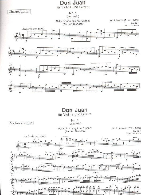 BUSCH, J.G., ED HOEH, VOLKER, ED KV527 LEPORELLO AN DEN BLONDEN OH IHR MAEDCHEN ZUR LIEBE GEBOREN REICH MIR DIE HAND MEIN LEBEN TREIBT DER CHAMPAGNER KOMMT IHR MAEDCHEN IL MIO TESORO INTANTO ICH WEISS EIN MITTEL MENUETT AUS DER BUEHNENMUSIK, FINALE 1. AKT