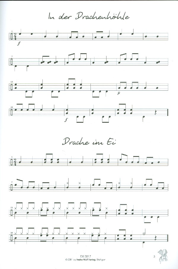 Eine Geschichte für Drum-Set 12 Solostücke In der Drachenhöhle Drache im Ei Drachentanz Drache aus dem Ei Kleiner Drache Nogard Drachenfest Marsch in den Drachenwald Felsen der Drachen Fluss im Drachenwald Nogards Abenteuer Nogard und der Ritter zwei Freunde