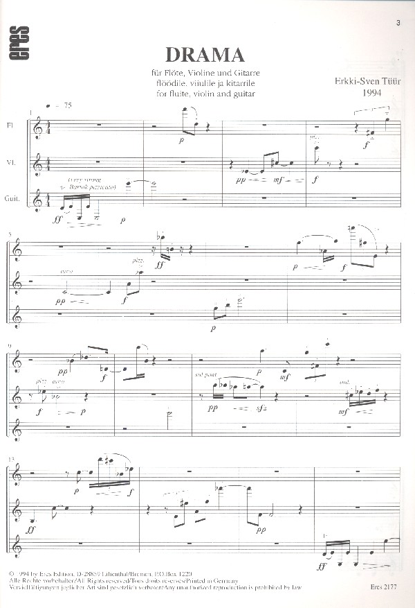 | Untertitel: | für Flöte, Violine und Gitarre 3 Spielpartituren |