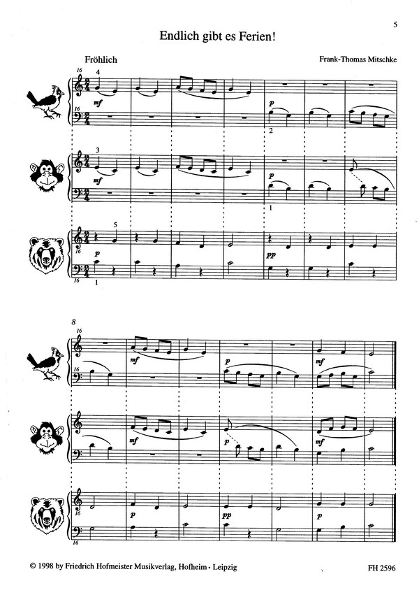 Lieder und Stücke Endlich gibt es Ferien (Mitschke) Peter singt (Mitschke) Sur le pont D'Avignon Vogelhochteit Der Kuckuck und der Esel Lisa tanzt (Mitschke) Elefantenmarsch (Mitschke) Der Regen hört auf (Mitschke) Drei Freunde sind traurig (Mitschke) In einer fremden Stadt (Mitschke) O, du lieber Augustin