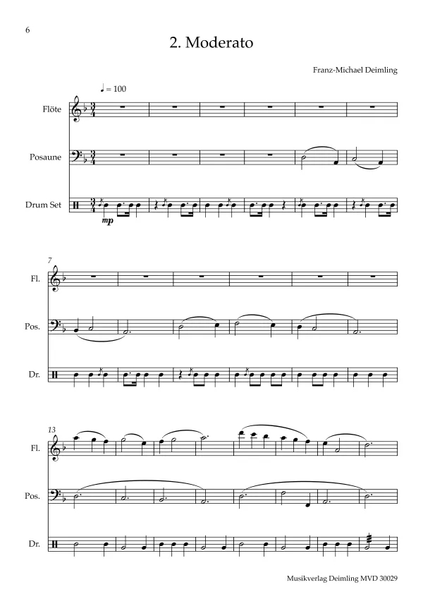 | Untertitel: | für Flöte, Posaune und Schlaginstrumente Partitur und Stimmen |