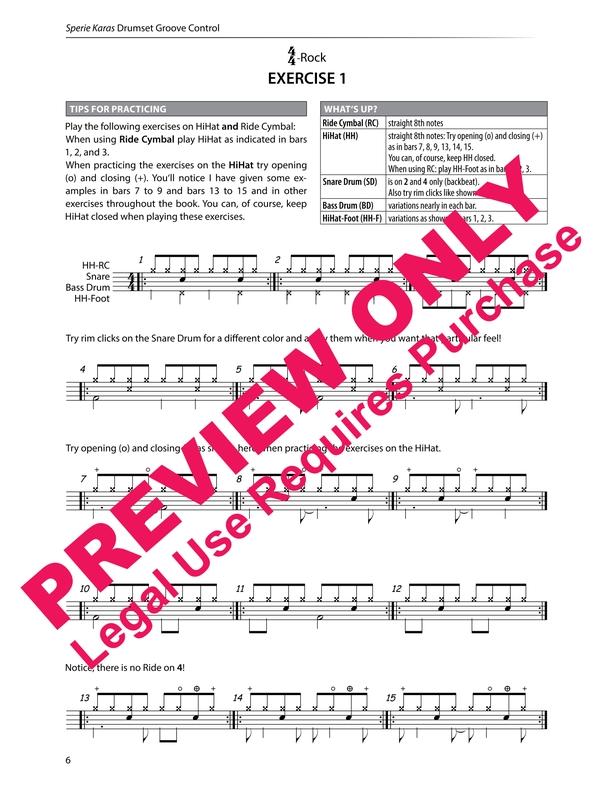 100 Grove Exercises including Odd Meters & Changing Meter Pieces Kurzbeschreibung: Dies ist eine ausschließlich englischsprachige Ausgabe, weil sie einem Work- bzw. Exercise Book gemäß wenig Text, aber vorwiegend systematisch aufeinander aufbauende Übungen enthält: Ziel ist, die absolute Groove-Kontrolle am Drumset zu erreichen. PART 1 das mit 100 Seiten umfangreichste Kapitel widmet sich dafür intensiv den Koordinationsübungen und der Technikschulung im Rock Style und seinen verschiedenen Spiel- und Taktarten (vom gängigen 4/4, Shuffle und 3/4 bis hin zu den sogenannten Odd Meters (den krummen, ungeraden Taktarten wie 5/4, 7/4, 5/8, 6/8, 7/8, 9/8, 12/8, 6/4, 9/4 und 11/4). PART 2 befasst sich mit den Changing Meter Pieces. Das sind 10 Stücke für Drumset, in denen die Taktarten zwischen geraden und ungeraden Taktarten hin und her wechseln. Die Stoßrichtung hier ist: Modern contemporary music! PART 3 zeigt anhand einzelner Übungen aus Part 1 und 2, wie einzelne Snare-Akzente von den Toms ersetzt werden können. Das eröffnet neue Horizonte zum Experimentieren und zur Soloinspiration.