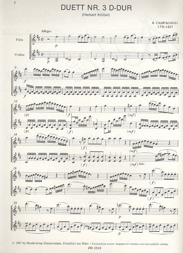 Produktinformationen "Duett D-Dur Nr.3 für Flöte und Violine"