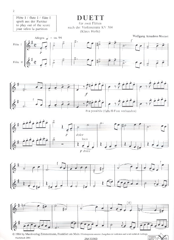 Produktinformationen "Duett nach der Violinsonate KV304"
