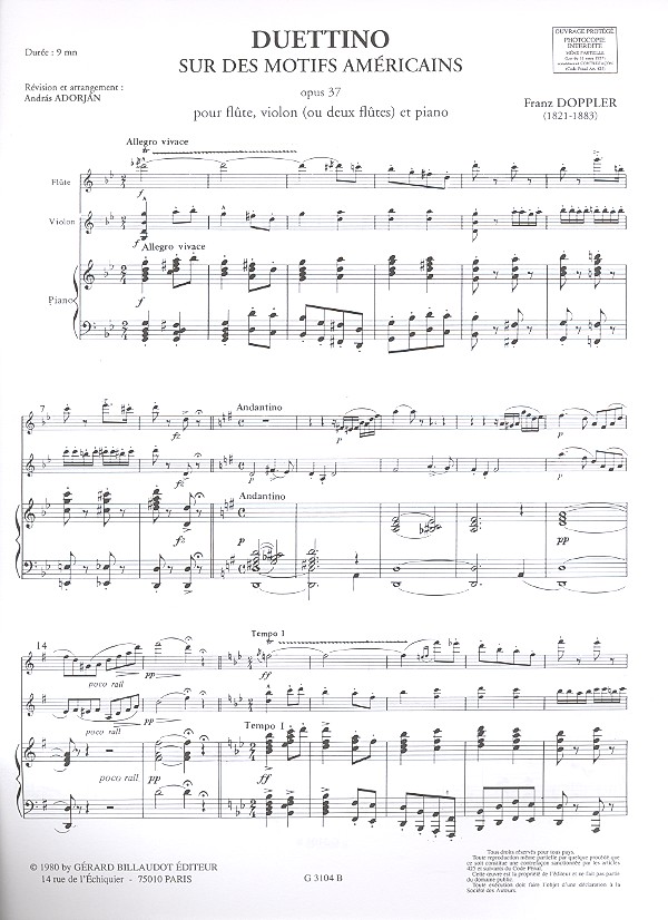 | Untertitel: | américains pour flûte, violon (2 flûtes) et piano |