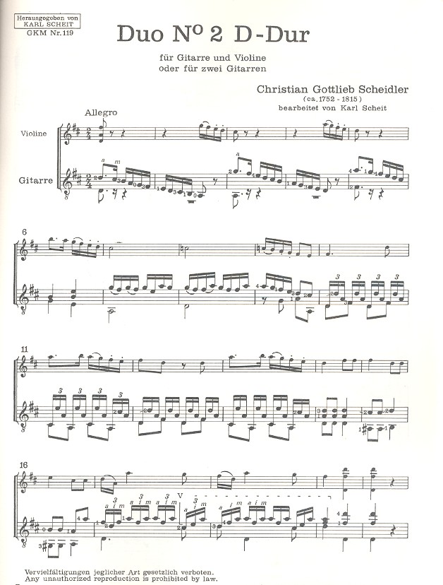 | Untertitel: | für Gitarre und Violine (oder 2 Gitarren) Partitur und Stimmen |