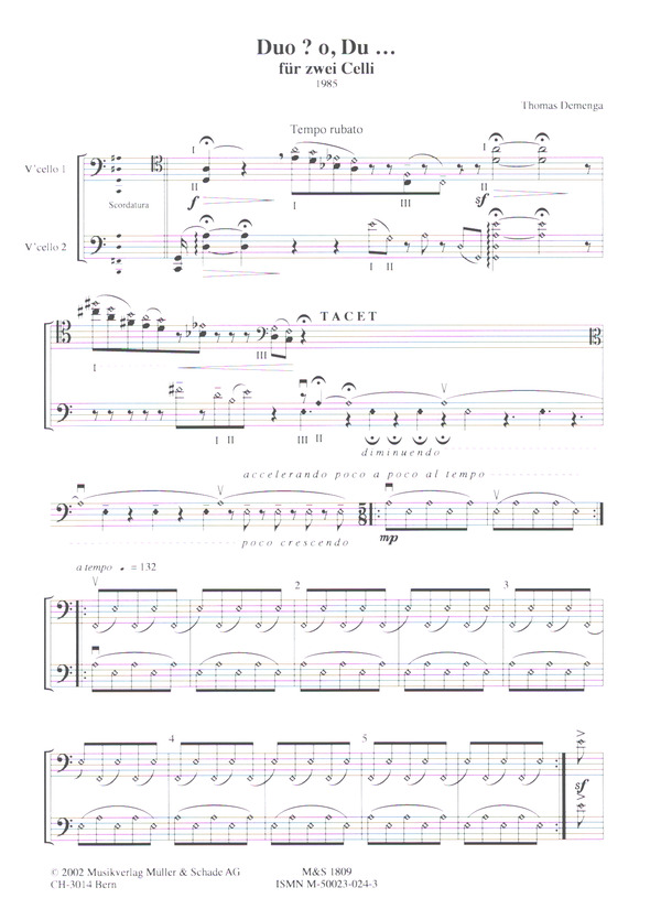 | Untertitel: | für 2 Violoncelli Partitur und Stimmen |